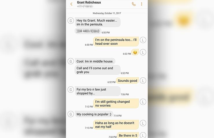 In text messages, Robicheaux gave Lauren directions to his apartment and explained that his brother-in-law would be joining them for dinner. Robicheaux even boasted that his cooking was popular. Lauren, who lives in Laguna Beach, said she was excited to meet him.
